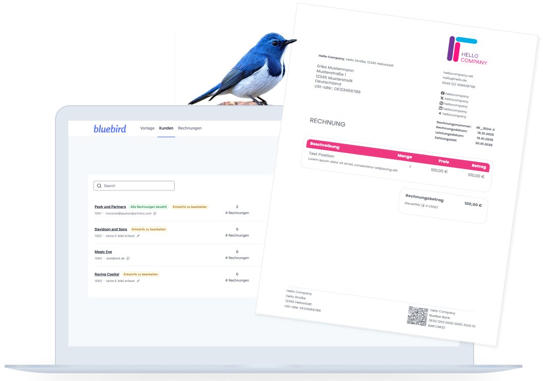 Mit BlueBird entsprechen deine Rechnungen vollumfänglich den deutschen Steuervorschriften.